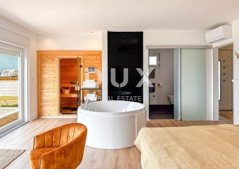 Zum Verkauf präsentieren wir eine einzigartige Immobilie auf dem Markt, die für Paare konzipiert ist! Es handelt sich um ein romantisches einstöckiges Haus, das 250 Meter vom Meer entfernt liegt. Bei der Gestaltung wurde auf jedes Detail geachtet, um den maximalen Komfort des Raums zu nutzen. Das Konzept dieser Immobilie basiert auf Hedonismus und ist für Paare gedacht. Das Erdgeschoss besteht aus einem Eingangsbereich, einem Technikraum, einer Küche, einem geräumigen Kleiderschrank, einem offenen Wohnzimmer und einem Schlafzimmer mit besonderen Einrichtungen Es gibt Zugang zu einer überdachten Terrasse mit Swimmingpool und Liegewiese. Der zentrale Teil dieser Immobilie ist naturgemäß das Wohnzimmer, das über eine Hydromassage-Badewanne in der Mitte des Raums, große Doppelbetten für maximalen Komfort, einen Sofabereich und einen großen Fernsehbildschirm verfügt. Unmittelbar im zentralen Teil haben Sie nach dem Genuss der Hydromassagewanne Zugang zur Sauna im Bereich, einer finnischen Sauna aus Massivholz, und nach der Sauna haben Sie Zugang zu einer großen begehbaren Dusche mit Regendusche Duschsystem. Für eine zusätzliche Atmosphäre werden im gesamten Raum LED-Lampen und ein Soundsystem installiert. Im Badezimmer wird eine Fußbodenheizung installiert, eine Mitsubishi-Klimaanlage und an den großen Glaswänden, die den Mittelteil schmücken, werden elektrische Aufzüge installiert. Das Erdgeschoss befindet sich auf einem Grundstück von 410 m2 und darin befindet sich ein Swimmingpool, der auch für Paare konzipiert ist. Es werden beige Mosaike installiert und der Reinigungsprozess erfolgt durch das Elektrolyseverfahren. Der Rest des Gartens besteht aus Grünflächen und der Zugang zum Grundstück selbst erfolgt durch ein elektrisches Tor, wo sich auch ein Parkplatz befindet. Es handelt sich um eine seltene Immobilie auf unserem Markt, und abgesehen von dem innovativen, auf Paare zugeschnittenen Konzept ist die Lage selbst ruhig, umgeben von Natur und Ferienhäusern direkt am Meer mit einer sehr schönen Aussicht. Zentrum von Pula – 10 Autominuten entfernt. Flughafen Pula – 10 Autominuten entfernt. Zentrum von Medulin – 5 Autominuten entfernt. Für weitere Informationen wenden Sie sich bitte an die Agenten.
