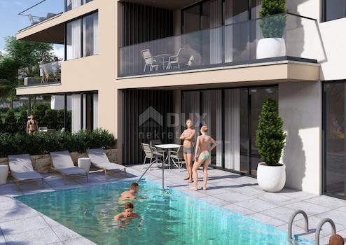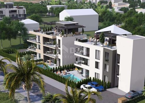 ZADAR, SUKOŠAN – Luxuriöses Apartment mit Swimmingpool im Bau, 1. Reihe zum Meer CS01