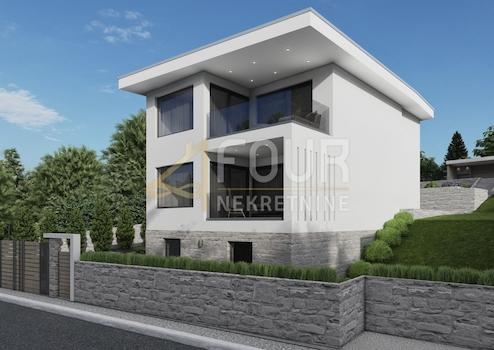 Dem Projekt zufolge wurde ein modernes Haus von 273,49 m2, Etagen S+F+1 mit zweistöckiger Wohnung, Garage, Swimmingpool und Sommerküche übersehen!