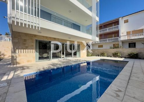 TOP LAGE 200 Meter vom Meer entfernt, Wohngebäude mit 3 Wohneinheiten im Zentrum von Krk. Im Erdgeschoss eines einzigartigen, hochwertig gebauten Gebäudes befindet sich eine Wohnung mit einer Wohnfläche von 75 m2, die eine Kombination aus Zweckmäßigkeit und Komfort bietet. Mit einem geräumigen Flur, einem Abstellraum, einer Speisekammer, einem Badezimmer, einer separaten Toilette, zwei Schlafzimmern und einer Küche, einem Esszimmer und einem Wohnzimmer im „Open-Space“-Konzept bietet dieses Apartment alles, was Sie für einen angenehmen Aufenthalt in der Stadt Krk benötigen. Das Wohnzimmer führt zu einer überdachten Terrasse von 27 m2, ein idealer Ort zum Entspannen und Genießen der frischen Luft. Es ist mit einer Klimaanlage in allen Räumen und einer Fußbodenheizung mit separaten Reglern in den Räumen ausgestattet. Hochwertige CORTIZO ALU-Tischlerarbeiten, hochwertige Boden- und Wandbeläge sowie hochwertige Sanitärartikel verleihen dieser modernen Wohnung eine luxuriöse Note. Mit zwei gesicherten Parkplätzen verfügen Sie über eine praktische Lösung zum Abstellen Ihres Fahrzeugs. Die Infrastruktur wird komplett angeschlossen und die Videoüberwachung vorbereitet. Der Abschluss der Arbeiten ist für Juni 2024 geplant, und wenn Sie die möblierte Wohnung übernehmen möchten, können Sie im Herbst 2024 mit der Übergabe durch professionelle Innenarchitekten rechnen. Innenzeichnungen auf Anfrage möglich. *** Sehr geehrte Kunden, die Agenturprovision wird gemäß den Allgemeinen Geschäftsbedingungen berechnet: www.dux-nekretnine.hr/opci-uvjeti-poslovanja