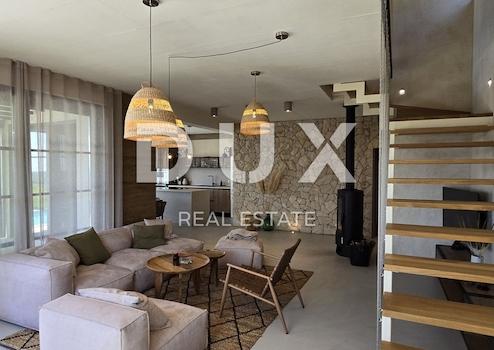 ISTRIEN, MOTOVUN, UMGEBUNG – Eine wunderschöne Villa vor einer Grünfläche mit Panoramablick und völliger Privatsphäre. Motovun ist ein beliebtes Touristenziel, das heute als Zentrum für Hedonisten aus aller Welt gilt. Die antike istrische Akropolisstadt, die auf einem 277 Meter hohen Hügel liegt, der das Tal des Flusses Mirna dominiert, ist eine der schönsten Altstädte im Mittelmeerraum. Zu ihr führt die längste istrische Treppe mit 1.052 Stufen. Motovun ist ein Stadtdenkmal auf der Liste des UNESCO-Weltkulturerbes. Was Motovun und seine Gemeinde, die eine Fläche von 33,58 km² umfasst, so besonders macht, sind die biologische Vielfalt, die reiche Flora und die besonderen Mikroklimaeigenschaften. Aufgrund seiner besonderen geomorphologischen Eigenschaften mit zahlreichen Hügeln zieht es die Aufmerksamkeit mit seiner natürlichen Schönheit und unvergesslichen Panoramablicken auf sich, die die Seele erfüllen. Unweit von Motovun steht diese einzigartige Villa mit modernem Design zum Verkauf. Die Villa liegt auf einem Hügel, am Rande der Bauzone und bietet einen Blick auf die umliegenden Hügel, die Natur und das Grün. Der Blick reicht auf der einen Seite bis zum Meer in der Ferne und auf der anderen bis nach Motovun. Die Fläche von 198 m2 dieser schönen Villa besteht aus 137 m2 geschlossener Nettowohnfläche, 36 m2 zwei Terrassen, von denen eine mit einem beweglichen Dach überdacht ist, und einem 25 m2 großen Keller mit separatem Eingang, in dem sich der Heizraum befindet befindet sich und dient auch zur Aufbewahrung von Dingen. Der Wohnbereich der Villa erstreckt sich über das Erdgeschoss und die erste Etage. Im Erdgeschoss befinden sich ein Wohnzimmer, eine Küche mit Speisekammer, ein Esszimmer, ein Badezimmer und die bereits erwähnte überdachte Terrasse. Die Innentreppe führt in den ersten Stock, wo sich zwei Schlafzimmer mit jeweils eigenem Bad befinden. Das Hauptschlafzimmer verfügt über einen eigenen Ausgang zur Terrasse, die einen zauberhaften Blick auf die Natur, Motovun und das Meer in der Ferne bietet. Der kleine Teil des 2.071 m2 großen Grundstücks liegt in der Bauzone (592 m2), während der Rest landwirtschaftlich genutzte Fläche ist. Da die Villa die letzte im Baugebiet ist, herrscht viel Privatsphäre und Ruhe, was diese Villa so besonders macht. Im Garten finden Sie einen schönen beheizten Pool von 40 m2 mit Salzwasser. Geschaffen, um warme Sommertage zu genießen. Der Rest des Gartens ist eine Grünfläche mit unzähligen Möglichkeiten, die Natur zu genießen. Das Besondere an der Villa ist auch ihr einzigartiger Einrichtungsstil, der dieses Haus von vielen ähnlichen Anwesen unterscheidet. Leichter und luftiger Minimalismus vermittelt ein Gefühl von Ruhe und Erleichterung, ohne unnötige Dinge, neutrale Farben und jedes Möbelstück ist perfekt zu einem schönen Ganzen vereint. Natürliche Materialien, Mikrozementböden und jedes andere Detail wurden sorgfältig entworfen, um das ideale Maß an Ästhetik und Funktionalität zu finden. Der angegebene Preis bezieht sich auf juristische Personen im Mehrwertsteuersystem, für natürliche Personen wird die Mehrwertsteuerposition berechnet. Der Verkäufer ist eine juristische Person und der Käufer ist von der Zahlung der Immobilienumsatzsteuer befreit. Eine wirklich einzigartige Immobilie, ein angenehmer Ort zum Leben, aber auch Potenzial für eine Vermietung. Sehr geehrte Kunden, die Vermittlungsprovision wird gemäß den Allgemeinen Geschäftsbedingungen berechnet. https://www.dux-nekretnine.hr/opci-uvjeti-poslovanja