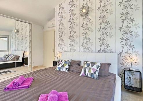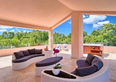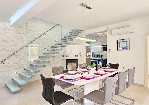 Marčana ist eine Gemeinde im Südosten der Halbinsel Istrien. Sie liegt etwa 12 km nordöstlich von Pula, der größten Stadt Istriens. Es ist als Reiseziel für Meer, Urlaub, Wein und Olivenöl bekannt. Es ist eine kulturreiche Siedlung mit kristallklarem Meer und einer fast unwirklichen Landschaft bestehend aus wunderschönen Buchten und grünen Halbinseln. Die 36 Kilometer lange Küste ist die am wenigsten urbanisierte Küstenzone Istriens. Marčana und seine fruchtbaren grünen Felder mit sanften Hügeln, die zu versteckten Felsbuchten und abgelegenen Dörfern und Städten abfallen, sind ein unentdeckter Schatz der Ostküste Istriens. Umgeben von viel Grün in einer sanften Gegend unweit von Marčana steht eine makellose Villa am Rande des Dorfes zum Verkauf. Es ist eingebettet in Frieden, Ruhe und den Charme der Natur und repräsentiert die Harmonie von Raum, Bedürfnissen, Funktionen, Konstruktion und Schönheit. Mit seiner schlichten Architektur fügt sich das Haus in Form und Farbe in das Dorf und die Landschaft ein. Der istrische Stein „Kanfanar“, der das Anwesen dominiert, verbindet Tradition mit modernem Stil und zeichnet sich durch beeindruckende Glaswände aus, die eine subtile Grenze zwischen Innen- und Außenbereich bilden und viel natürliches Licht hereinlassen. Die auf zwei Etagen verteilte Innenaufteilung bietet ein harmonisches Wohnumfeld, das Eleganz ausstrahlt und mit hochwertiger Ausstattung und Elementen moderner Möbel für hohen Komfort sorgt. Im Erdgeschoss gibt es eine Küche und ein Wohnzimmer mit Esszimmer und Zugang zu einer großzügigen überdachten Terrasse mit Sommerküche. Im restlichen Erdgeschoss befinden sich zwei Schlafzimmer, ein Badezimmer, eine Waschküche mit Toilette und ein Abstellraum. Die erste Etage besteht aus zwei Schlafzimmern, einem Fitnessraum, zwei Badezimmern und einer großzügigen, teilweise überdachten Terrasse. Die Terrasse mit Blick ins Grüne verfügt über einen Loungebereich und einen Whirlpool. Der umzäunte Garten ist voller Grün und mediterraner Pflanzen und die perfekte Harmonie wird durch den 34 m² großen Swimmingpool mit Sonnendeck abgerundet. Die hervorragende Lage und räumliche Organisation des Innen- und Außenbereichs dieser makellosen Immobilie bietet die Möglichkeit für ein komfortables Familienleben oder eine Investitionsinvestition in ein touristisches Vermietungsunternehmen. Sehr geehrte Kunden, die Agenturprovision wird gemäß den Allgemeinen Geschäftsbedingungen berechnet: www.dux-nekretnine.hr/opci-uvjeti-poslovanja