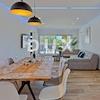 Zusätzlichen Komfort bietet die zweistöckige Wohnung im Haus. Die Wohnung verfügt über einen separaten Eingang und besteht im Erdgeschoss aus einem Wohnzimmer mit Küche und einem Gäste-WC, während sich im ersten Stock ein Schlafzimmer mit eigenem Bad und Zugang zu einer überdachten Terrasse befindet.