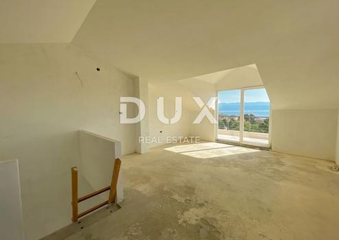 Zum Verkauf steht eine ausgezeichnete Wohnung auf zwei Etagen mit hoher Mansarde und offenem Meerblick, nur 200 Meter vom Meer entfernt. Dank der geräumigen Zimmer mit zwei Balkonen stellt die Wohnung eine einzigartige Gelegenheit dar. Es verfügt über einen offenen Raum im Erdgeschoss von 60 m2, der aus einer Küche, einem Badezimmer, einem Wohnzimmer und einer privaten Terrasse mit außergewöhnlichem Blick auf das azurblaue Meer besteht. Die zukünftige Treppe inmitten eines großen offenen Raumes führt zu einer hohen Mansarde von ca. 50 m2, die viele Möglichkeiten für ein oder zwei weitere Schlafzimmer bietet, die nach Belieben dekoriert werden können. Auf der Etage befindet sich ein weiteres größeres Badezimmer, und die Südseite dieser Etage öffnet sich zu einer privaten Terrasse mit herrlichem Blick auf das Meer. Die Offenheit des Raums nach Süden sorgt das ganze Jahr über für eine warme und angenehme Temperatur. sowie viel Licht. Wir betonen den besonderen mediterranen Stil des Gebäudes, in dem sich nur 5 Wohnungen befinden. Darüber hinaus garantiert die Lage des Gebäudes Ruhe und absolute Privatsphäre, da es in einer Sackgasse liegt und von üppigem Grün umgeben ist. Die alte und malerische Stadt Lovran sowie der erste Strand sind in nur 2 Minuten zu Fuß erreichbar. Es gibt einen Parkplatz im Garten und kostenlose Parkplätze für Gäste stehen auf der Straße zur Verfügung. Die Wohnung wird in einer hohen Renovierungsphase mit Tischlerarbeiten verkauft, wobei der Käufer die Räumlichkeiten nach seinem Geschmack gestalten kann. Die Immobilie stellt eine fantastische Gelegenheit dar, eine Wohnung im malerischen Lovran zu kaufen, mit einem fantastischen Blick auf das Meer und nur 200 Meter vom ersten Strand und der berühmten Promenade Lungomare entfernt. Das Gebäude verfügt über eine Nutzungserlaubnis und eindeutige Eigentumsverhältnisse. Sehr geehrte Kunden, die Vermittlungsprovision wird gemäß den Allgemeinen Geschäftsbedingungen berechnet. https://www.dux-nekretnine.hr/opci-uvjeti-poslovanja