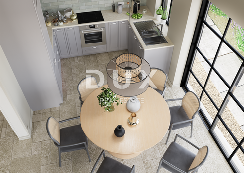Wir präsentieren stolz das Projekt eines Neubaus in der Nähe der malerischen Stadt Tinjan. Es handelt sich um ein Projekt zum Bau eines privaten Komplexes typischer Villen, der nach dem Vorbild italienischer Villen mit einem Hauch istrischen Baustils gestaltet ist. Die Villen sind eingebettet in eine Umgebung mit wunderschöner Natur, einer sanften Hügellandschaft und bewirtschafteten Ackerfeldern. Beim Bau wird eines der modernsten Materialien verwendet, was das Qualitätsniveau bestätigt und maximalen Komfort während des Aufenthalts in jeder Villa bietet. Bei der Ausstattung der Villen kommt eine der modernsten auf dem Markt erhältlichen Techniken zum Einsatz, natürlich handelt es sich dabei um namhafte globale Hersteller. Darüber hinaus legten die Investoren großen Wert auf die Gestaltung des Innenraums der Villen, um sicherzustellen, dass jeder Raum seine vorgesehene Funktion vollständig erfüllt. Alle Villen der Anlage verfügen über die gleiche Grundfläche und Raumaufteilung, lassen ihren zukünftigen Eigentümern aber selbstverständlich Raum, die Immobilie in Zusammenarbeit mit dem Investor an ihre Bedürfnisse und Wünsche anzupassen. OBJEKTBESCHREIBUNG: Diese hochwertige, malerische Villa verfügt über insgesamt 127,66 m² Wohnfläche, die auf zwei Etagen aufgeteilt ist, nämlich; Erdgeschoss (73,73 m2) und erster Stock (53,93 m2). So empfängt uns im Erdgeschoss der Villa eine Eingangshalle, die zum Wohnbereich führt, der als offener Raum ohne Trennwände konzipiert ist. Geplant ist hier ein großes und gemütliches Wohnzimmer mit Holzkamin und einer Glasschiebewand, durch die sich der Zugang und Blick auf den Garten und den Pool erstreckt. Neben dem Wohnzimmer, leicht abgetrennt, befindet sich der Raum für die Küche mit einem geräumigen Esszimmer, von dem aus auch der Ausgang zur überdachten Terrasse durch die Glaswand führt. Neben dem Wohnzimmer gibt es, getrennt durch einen kleineren Flur, auch das erste Schlafzimmer, das über ein eigenes Bad und Zugang zum Garten verfügt. Darüber hinaus gibt es im Erdgeschoss der Villa in der oben genannten Lobby ein Gäste-WC sowie eine Treppe, die in die erste Etage der Villa führt, wo sich 2 komfortable und geräumige Schlafzimmer befinden. Jedes Schlafzimmer verfügt über ein eigenes Bad sowie Zugang zu einer Gemeinschaftsterrasse. Am Ende der Bauarbeiten wird der Hof vollständig begrünt und von einer Mauer umgeben sein. Somit haben Sie die Möglichkeit, Ihren Aufenthalt im Freien umgeben von zahlreichen mediterranen Pflanzen und angelegten Grünflächen zu verbringen, die durch ein automatisches Bewässerungssystem versorgt werden. Natürlich wird der zentrale Teil des Gartens von einem komfortablen Swimmingpool mit Elektrolyseanlage (Salzwasser) und einer Liegewiese eingenommen, während Sie sich keine Sorgen um Ihre Blechhaustiere machen müssen, da Parkplätze für bis zu 2 Autos vorhanden sind im Garten der Villa geplant. ZUSÄTZLICHE INFORMATIONEN: * Villen werden schlüsselfertig und ohne Möbel verkauft. * Käufer haben das Recht, Einfluss auf die Konstruktion zu nehmen. * Die Villa wird mit Klimaanlagen in jedem Raum sowie einer elektrischen Fußbodenheizung in allen Räumen ausgestattet sein. * Die Immobilie ist in das Mehrwertsteuersystem einbezogen, was bedeutet, dass für juristische Personen der Preis abzüglich des Steuerbetrags berechnet werden kann. * Das voraussichtliche Ende der Arbeiten ist Mitte 2025. Für weitere Fragen, notwendige Informationen oder den Wunsch, einen Termin zur Besichtigung der Villa zu vereinbaren, können Sie sich gerne vertrauensvoll an uns wenden. Sehr geehrte Kunden, die Agenturprovision wird gemäß den Allgemeinen Geschäftsbedingungen www.dux-nekretnine.hr/opci-uvjeti-poslovanja berechnet