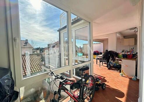 Sie zeichnet sich durch eine geräumige Terrasse von ca. 40 m² aus, die einen schönen Blick auf die Stadt bietet.