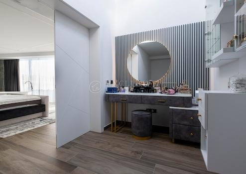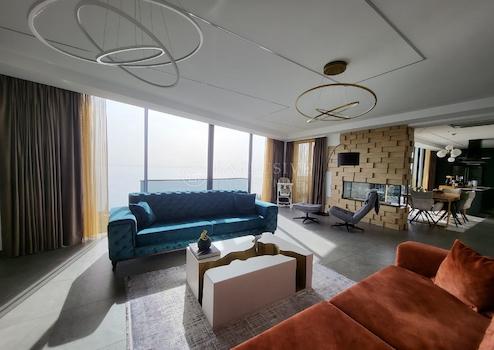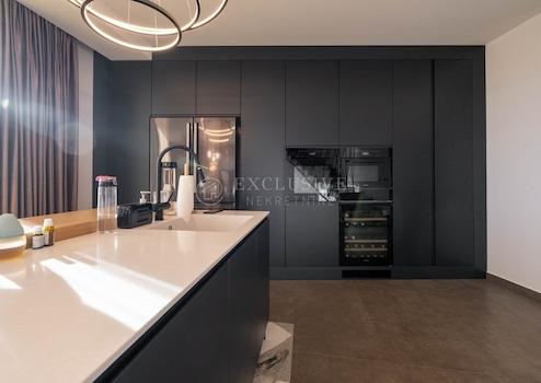 Diese einzigartige zweistöckige Wohnung mit einer Gesamtfläche von 227 m2 mit allen Terrassen verzaubert bereits am Eingang zur unteren Etage, wo sich ein fantastisches Wohnzimmer mit offenem Raumkonzept, Küche und Esszimmer sowie ein Schlafzimmer mit Badezimmer befinden , eine Waschküche mit Gästetoilette und eine luxuriöse überdachte Terrasse mit hohen Decken.