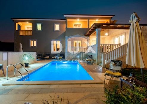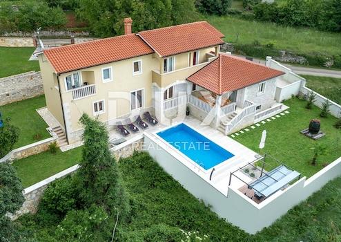 Die einst von Stadtmauern und Türmen umgebene Stadt ist heute ein Ort mit ausgeprägtem Charme, an dem Tradition und Geschichte stolz zur Schau gestellt werden. Tinjan liegt oberhalb der ewig grünen Draga, deren Schönheit wir vom Tinjan-Aussichtspunkt unter den alten Ladons genießen können. Die Gemeinde Tinjan umfasst eine Fläche von 53,94 km2 und es gibt 8 Siedlungen innerhalb der Gemeinde. Unweit der Stadt Tinjan steht ein komfortables Haus mit Swimmingpool zum Verkauf. Es liegt in einer sanften Siedlung, umgeben von Natur, Einfamilienhäusern und Ferienhäusern und bietet eine perfekte Balance zwischen ländlicher Umgebung und Nähe zu städtischen Annehmlichkeiten. Neben der absolut komfortablen Lage zeichnet sich die Immobilie auch durch die Bauqualität aus, die langfristige Zufriedenheit und Wohnqualität garantiert. Ein Haus mit zeitlosem Design, teilweise mit Stein verkleidet, offenbart die ganze Schönheit schlichter Architektur. Es wurde als eine Wohneinheit konzipiert, die sich über drei geschmackvoll eingerichtete und hochwertig ausgestattete Etagen erstreckt, die Eleganz ausstrahlen. Im Keller befindet sich ein Fitnessstudio. Das Erdgeschoss besteht aus einem Wohnzimmer mit Esszimmer und Zugang zu einer überdachten Terrasse, einer Küche, einem Gäste-WC und einem Schlafzimmer mit eigenem Bad. Die erste Etage besteht aus einem Abstellraum und drei Schlafzimmern mit eigenem Bad und Ausgang zu überdachten Terrassen. Der Garten ist landschaftlich und gärtnerisch gestaltet und der elegant integrierte 26 m² große Swimmingpool mit Sonnendeck sorgt für vollkommene Harmonie. Die hervorragende Lage und die räumliche Organisation des Innen- und Außenbereichs dieser Immobilie bieten die Möglichkeit für ein komfortables Familienleben oder eine Investitionsinvestition in ein touristisches Vermietungsunternehmen.