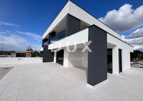 In außergewöhnlicher Lage in Debeljak in der Nähe von Zadar steht eine luxuriöse Doppelhaushälfte mit fantastischem Meerblick zum Verkauf. Die Villa mit einer Gesamtfläche von 233 m2 wurde auf einem Grundstück von 440 m2 erbaut und ist von modernen Ferienhäusern umgeben. Im Erdgeschoss der Villa gibt es eine Küche mit Esszimmer und ein Wohnzimmer (50 m2), von dem aus man Zugang zu einer überdachten Terrasse hat, vor der sich ein beheizter Gegenstrompool von 32 m2 befindet. Im Erdgeschoss gibt es ein weiteres Schlafzimmer mit begehbarem Kleiderschrank und ein Badezimmer, im Flur gibt es eine zusätzliche Toilette und einen Waschraum. Im Obergeschoss befinden sich drei Schlafzimmer, von denen eines über ein eigenes Bad und einen begehbaren Kleiderschrank verfügt, während sich die anderen beiden ein Badezimmer teilen. Im ersten Stock gibt es außerdem eine großzügige Terrasse mit beeindruckendem und freiem Blick auf das Meer. Auf dem Dach der Villa besteht weiterhin die Möglichkeit, die Dachterrasse nach den Wünschen der Kunden zu dekorieren (Einbau von Grill, Whirlpool, Sommerküche...). Das Haus ist von hoher Qualität gebaut, von der Konstruktion selbst, die aus Stahlbeton besteht, während die inneren Trennwände aus Ziegeln oder doppeltem Knauf bestehen. Die Villa wird in jedem Raum mit einem Heiz- und Kühlsystem ausgestattet sein und die Badezimmer über eine Fußbodenheizung mit erstklassiger italienischer Keramik. Die Decken werden modern mit LED-Beleuchtung ausgestattet. Die hochwertige Tischlerei ist mit Moskitonetzen und elektrischen Jalousien ausgestattet. Im Innenhof der Villa steht ein privater Parkplatz mit vier Stellplätzen zur Verfügung. Die Besonderheit der Villa besteht darin, dass sie über einen Grundwassertank für Regenwasser verfügt, der die Möglichkeit bietet, den Pool zu füllen und die Umgebung zu bewässern, sowie die Möglichkeit, neben Filtern auch Trinkwasser zu verwenden. Die Villa befindet sich in einer günstigen Lage, die einen freien Blick auf das Meer garantiert. Zadar ist 16 km über die Autobahn entfernt und der Flughafen Zadar ist 8 km entfernt. Der nächste Strand ist Dječji raj in Sukošan, nur 5 km entfernt, wo es auch einen Yachthafen und Restaurants gibt. Sehr geehrte Kunden, die Agenturprovision wird gemäß den Allgemeinen Geschäftsbedingungen www.dux-nekretnine.hr/opci-uvjeti-poslovanja berechnet