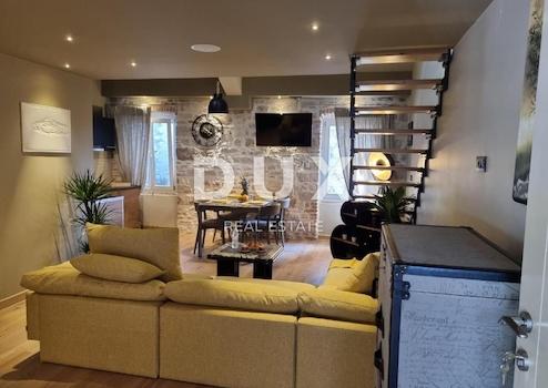 Wir präsentieren stolz dieses hochwertige Designer-Apartment im Zentrum von Rovinj. Die Wohnung befindet sich in einem kleineren Wohnhaus, das nur aus zwei Wohneinheiten besteht, von denen eine diese Wohnung ist. Das Gebäude wurde ebenso wie die Wohnung komplett renoviert, eine neue Fassade und ein neues Dach wurden angebracht, was diese Wohnung besonders interessant für alle macht, die eine eigene Ecke im paradiesischen Rovinj suchen. BESCHREIBUNG DER WOHNUNG; Der Eingang zum Gebäude führt über eine renovierte private Treppe zur Wohnung im ersten Stock und zur Lobby des Gebäudes. Beim Betreten der Wohnung befinden wir uns in einer kleineren Lobby, die uns in den offenen Bereich der Wohnung führt, wo sich ein geräumiges Wohnzimmer, eine moderne und voll ausgestattete Küche mit Essbereich befindet. Die Wohnung verfügt außerdem über ein größeres Schlafzimmer sowie ein komfortables, modernes Badezimmer und eine Galerie, in der sich ein zweites Schlafzimmer und ein Raum zum Entspannen befinden. Darüber hinaus verfügt die Wohnung auch über einen zusätzlichen, von der Wohnung getrennten Raum, der mit einer geringen Investition in einen hochwertigen SPA-Bereich, Abstellraum, zusätzliche Wohnkapazität oder ähnliches umgewandelt werden kann. Ebenso befindet sich im kleineren und privaten Garten des Gebäudes vor dem Eingang des Gebäudes eine 15 m² große Terrasse, die in den wärmeren Sommermonaten von dieser Wohnung genutzt wird. WEITERE INFORMATIONEN; * Die Wohnung wurde komplett renoviert, die komplette Infrastruktur von Wasser, Strom und Entwässerung wurde geändert. * Auch die Mezzaninkonstruktion wurde geändert, so dass es sich nicht mehr um eine Holzkonstruktion, sondern um eine Betondecke mit hochwertiger Wärme- und Wasserdämmung handelt. * Auch das Dach des Gebäudes wurde saniert und eine hochwertige Wärme- und Wasserdämmung eingebaut . * Neue PVC-Tischlerei wurde installiert. * Die Wohnung ist mit hochwertigen Designlösungen ausgestattet. * Es verfügt über eine Klimaanlage zum Heizen und Kühlen der Wohnung. STANDORTBESCHREIBUNG: Die Wohnung befindet sich im Zentrum von Rovinj, nur 3 Gehminuten von der Kirche St. Eufemije sowie 250 m vom berühmtesten Strand von Rovinj entfernt, der fast im Zentrum der Stadt liegt. Rund um die Wohnung erstrecken sich zahlreiche bekannte Restaurants, Cafés und malerische Steinstraßen, so dass Sie sich schon beim Verlassen des Gebäudes im romantischen Zentrum von Rovinj wähnen können. Alle Annehmlichkeiten, die Sie für den Alltag benötigen, sind nur wenige Schritte von der Wohnung entfernt . Kurz gesagt, es handelt sich um eine Qualitätsimmobilie, die Ihrer Aufmerksamkeit würdig ist. Diese Wohnung stellt eine hervorragende Gelegenheit für alle dar, die auf der Suche nach einem eigenen privaten Winkel im magischen Rovinj sind, oder für alle, die nach einer idealen Investitionsmöglichkeit für touristische Zwecke mit sicherer Kapitalrendite suchen. Für weitere Fragen, notwendige Informationen oder den Wunsch, einen Wohnungsbesichtigungstermin zu vereinbaren, können Sie sich gerne an uns wenden! Sehr geehrte Kunden, die Agenturprovision wird gemäß den Allgemeinen Geschäftsbedingungen www.dux-nekretnine.hr/opci-uvjeti-poslovanja berechnet