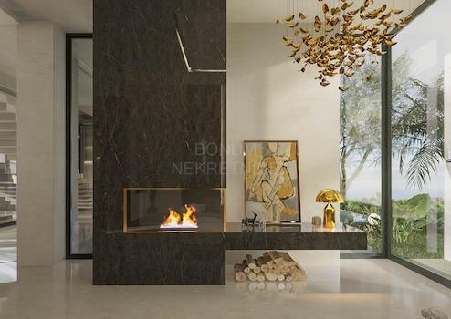 Das Haus wurde aus einer Kombination aus Beton und Ziegeln mit tragenden Wänden von 25 cm Dicke gebaut. Die Außenschreinerei besteht aus Aluminium mit hochwertigem Glas und die Böden sind mit luxuriöser Keramik und Parkett ausgelegt. Die Villa ist mit einem Multi-Split-System voll klimatisiert und nutzt eine Wärmepumpe zum Heizen und Warmwasserbereiten. Darüber hinaus ist auch die Umsetzung einer Lichtautomatisierung (SmartHome) und die Vorbereitung einer Beschallungsanlage mit eingebauten Lautsprechern geplant.
