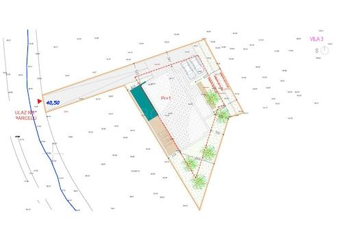 Die Fläche des Baugrundstücks dieser Villa beträgt 613 m2 und die Gesamtnettofläche beträgt 215,01 m2.
