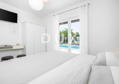 ISTRIEN, LABIN – Top-romantische Villa in einem weitläufigen und privaten Garten, der nicht einsehbar ist. Nur 7 km vom historischen Zentrum der Stadt Labin entfernt befindet sich ein hochwertiges einstöckiges Haus. Es handelt sich um eine kleine, moderne Villa mit beachtlichem Charakter und einer Gesamtwohnfläche von 90 m², die sich in einem weitläufigen und luftigen Garten von 1000 m² befindet. BESCHREIBUNG DES EIGENTUMS; Obwohl dieses einstöckige Haus von der Quadratmeterzahl her bescheiden ist, ist es in puncto Charakter, Inhalt und Komfort sicherlich nicht bescheiden. Der Hauptteil des Hauses ist ein offener Wohnbereich, in dem sich eine moderne und voll ausgestattete Küche mit Esszimmer und Wohnzimmer befindet. Was in diesem Raum eine besondere Atmosphäre schafft, ist die Luftigkeit und die Aussicht, die sich durch die Glaswände auf den Rest des Gartens und den Pool erstreckt. Im privaten Teil des Hauses gibt es ein Schlafzimmer mit einem modernen und komfortablen Badezimmer. Um Ihren Aufenthalt so hochwertig und angenehm wie möglich zu gestalten, gibt es außerdem einen separaten und separaten Wellnessbereich, in dem Sie mit einer finnischen Sauna, einem Whirlpool, einer Massageliege und einer zusätzlichen Dusche uneingeschränkt entspannen können. Im zentralen Teil des Anwesens befindet sich ein großzügiger Swimmingpool mit beheiztem Wasser von 38 m² und einem Hydromassagebereich, daneben gibt es auch eine Liegewiese. Außerdem gibt es eine moderne Sommerküche, in der Sie Ihre Lieblingsköstlichkeiten zubereiten können. Während Sie sich im restlichen umzäunten und privaten Garten mit viel Grün und einheimischen Pflanzen erholen können, sorgt ein automatisches Bewässerungssystem für Entspannung. Für Ihre kleinen Haustiere gibt es außerdem einen angelegten und überdachten Parkplatz für zwei Autos im Garten vor dem Haus. Wir sind sicher, dass Sie, wenn es um dieses schöne und warme einstöckige Haus geht, von der außergewöhnlichen Auslastung sowie den Bruttojahreseinnahmen überrascht sein werden, die es generiert, was eine sichere Kapitalrendite garantiert, und das in einem Zeitraum von nur 10 - 12 Jahre. Es handelt sich um ein Gebäude, das über ein hervorragend gestaltetes touristisches Angebot verfügt, und den zukünftigen Eigentümern wird die Möglichkeit geboten, dass die derzeitigen Eigentümer durch den Kauf des Gebäudes das gleiche Angebot weiterentwickeln und mit der gleichen Begeisterung und dem gleichen Wunsch die gleichen Top-Ergebnisse erzielen. Wir dürfen nicht außer Acht lassen, dass dieses Haus auch eine ideale Gelegenheit für eine Privatimmobilie darstellen kann, die Sie das ganze Jahr über genießen können. WEITERE INFORMATIONEN; * Das Haus ist komplett ausgestattet und wird als solches verkauft. * Das Haus verfügt außerdem über einen Kellerraum von 25 m2, der als Taverne oder Weinkeller genutzt werden kann. Warum nicht beide! * Das Haus verfügt außerdem über einen eigenen Kamin, der zum Aufstellen eines Pellet- oder Holzofens genutzt werden kann und so in den kälteren Monaten des Jahres für eine besondere Atmosphäre am Feuer sorgt. * Alle Räume sind mit neuen Klimaanlagen klimatisiert. Villen, zögern Sie nicht, uns zu kontaktieren! Sehr geehrte Kunden, die Agenturprovision wird gemäß den Allgemeinen Geschäftsbedingungen www.dux-nekretnine.hr/opci-uvjeti-poslovanja berechnet