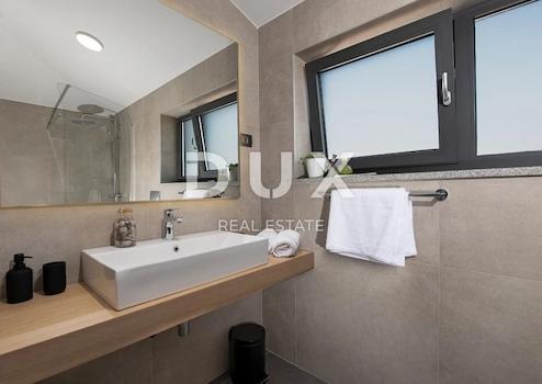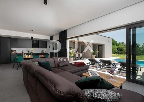ISTRIEN, LABIN - Neu gebautes mehrstöckiges Haus mit Swimmingpool und zusätzlichem Grundstück Im östlichen Teil Istriens, nur drei Kilometer vom Meer entfernt, liegt die mittelalterliche Stadt Labin, eine Stadt mit reicher Geschichte und kulturellem Erbe, heute eine Stadt von Galerien und Künstler, die das ganze Jahr über hier kreieren und leben. Der Hauptplatz der Stadt wird Sie mit seiner hervorragend erhaltenen Loggia aus dem 16. Jahrhundert begeistern, von der aus das Haupttor der St. Flora. Über der Tür sind das Wappen von Labin und der venezianische Löwe eingraviert, ein Symbol der Herrschaft Venedigs. Eine Kanone aus österreichischer Zeit und viele weitere interessante Details werden Sie bei einem Spaziergang durch die Stadt entdecken. 7 km vom Zentrum von Labin entfernt steht dieses interessante neu gebaute Etagenhaus mit einer Fläche von 190 m2 zum Verkauf. Im Erdgeschoss der Villa befinden sich eine Küche, ein Esszimmer und ein Wohnzimmer, ein Badezimmer, ein Schlafzimmer, ein Technikraum, zwei Toiletten, eine Sauna, ein Abstellraum und ein Abstellraum. Die große Glaswand im Wohnzimmer bietet einen Blick auf den wunderschön angelegten Garten, in dem sich eine überdachte Sommerküche und ein Swimmingpool mit einer Liegefläche von 39 m2 befinden. Das Erdgeschoss und der erste Stock sind durch eine Innentreppe verbunden. Im ersten Stock befinden sich drei Schlafzimmer mit jeweils eigenem Bad. Auf dem großen Garten von 983 m2 gibt es einen großzügigen Swimmingpool mit einer Liegefläche von 39 m2, um warme Tage zu genießen, und es gibt auch eine überdachte Sommerküche, ideal, um Mahlzeiten im Freien zu genießen. Die Villa wird komplett dekoriert und möbliert verkauft. Darüber hinaus ist im Preis ein Baugrundstück von 670 m2 neben dem Haus enthalten, das zusätzlichen Platz und Potenzial für Erweiterungen oder zusätzliche Einrichtungen bietet. Eigentum in Ordnung. Das Haus wird an Touristen vermietet und es besteht die Möglichkeit der Übernahme eines bereits etablierten Unternehmens, weshalb es sich ideal für Investitionen eignet. Sehr geehrte Kunden, die Agenturprovision wird gemäß den Allgemeinen Geschäftsbedingungen www.dux-nekretnine.hr/opci-uvjeti-poslovanja berechnet