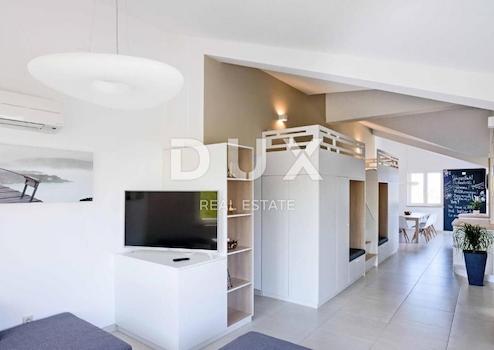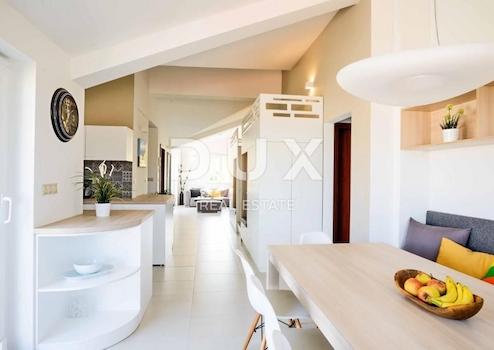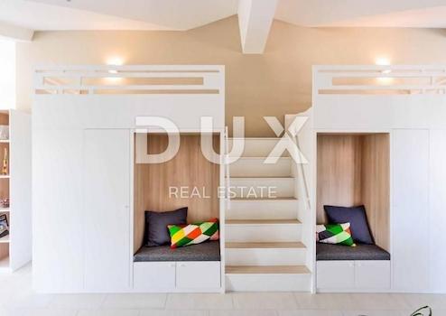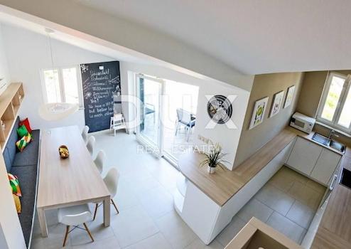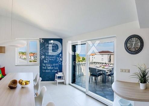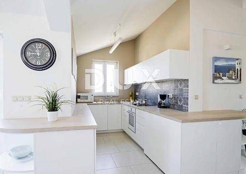INSEL KRK, MALINSKA - 4-Zimmer-Wohnung 200 m vom Meer entfernt An einem der begehrtesten Orte in Malinska verkaufen wir eine luxuriöse Vierzimmerwohnung mit zwei Terrassen und wunderschönem Blick auf das Meer. Die 118,25 m2 große Wohnung befindet sich im zweiten Stock und besteht aus einer Eingangshalle, einem Wohnzimmer mit ausgestatteter Küche und Esszimmer, vier Schlafzimmern, zwei Badezimmern, einer zusätzlichen Toilette, zwei Fluren und zwei nicht überdachten Terrassen. Beim Bau wurden ausschließlich hochwertige Materialien verwendet. Die gesamte Wohnung ist mit maßgefertigten Möbeln ausgestattet. Die Wohnung steht komplett ausgestattet und möbliert zum Verkauf. Es verfügt über zwei Parkplätze. Die Wohnung liegt ca. 200 Meter vom Meer entfernt und ist ideal für einen Aufenthalt in ruhiger Umgebung. Es besteht die Möglichkeit einer Entschädigung mit einem Zuschlag für eine Wohnung oder ein kleines Haus in Ljubljana. Sehr geehrte Kunden, die Agenturprovision wird gemäß den Allgemeinen Geschäftsbedingungen berechnet: www.dux-nekretnine.hr/opci-uvjeti-poslovanja