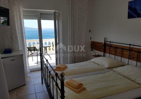 Wir verkaufen ein Haus in Novi Vindolski in attraktiver Lage. Es besteht aus Erdgeschoss, erstem und zweitem Stock. Im Erdgeschoss befindet sich eine Wohnung mit zwei Schlafzimmern, Wohnzimmer, Küche und Esszimmer, Terrasse und Badezimmer mit WC ca. 70 m2. Außerdem gibt es ein Esszimmer mit Küche mit ca. 20 Sitzplätzen. Waschküche und andere Nebenräume. Im ersten Stock befinden sich 8 Schlafzimmer, die als Apartments (eines davon als Doppelzimmer) angeordnet sind. Jedes Zimmer verfügt über ein Badezimmer mit WC und einen Balkon. Im zweiten Stock befinden sich 8 Schlafzimmer, die als Apartments mit Bad angeordnet sind (eines davon ist auch ein Doppelzimmer). Jede Wohnung verfügt über einen Balkon. Vom Balkon aus hat man einen wunderschönen Blick auf das Meer. Im Hof des Hauses gibt es einen wunderschön angelegten Garten mit verschiedenen mediterranen Pflanzen und acht Parkplätzen. Hinter dem Haus befindet sich ein Feld, das in der Saison für zusätzliche Parkplätze genutzt wird. Derzeit wird das Haus als Bed & Breakfast genutzt. Das Haus bringt das ganze Jahr über hervorragende Einnahmen. Bei Bedarf kann es auch zu einem großen Einfamilienhaus für mehrere Familien umgebaut werden. Eine ausgezeichnete Immobilie in begehrter Lage, nur 300 m vom Meer entfernt.
