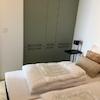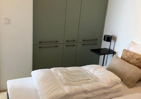 Geräumiges Schlafzimmer für 2 Personen mit einem Doppelbett und mit Kleiderschranken.