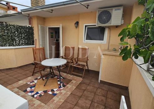 Die Kellerwohnung besteht aus einem Schlafzimmer, einer Küche und einem Wohnzimmer, einem Badezimmer und einer kleinen Terrasse. Diese befindet sich im Erdgeschoss, während die Wohnung im Obergeschoss ein Studio ist, jedoch über eine große Terrasse verfügt.