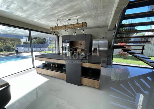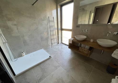 Wunderschöne städtische Designervilla komplett und luxuriös ausgestattet mit allen Details angeboten, die mit ihrem Innen- und Außenbereich höchsten Ansprüchen gerecht werden. Die Villa besteht aus drei Etagen. Im Untergeschoss befindet sich ein Spielzimmer mit TV, Wellness (finnische Sauna, Whirlpool, Dusche) Fitness, Heizraum mit Pool-Maschinenraum und Wärmepumpen der Marke Daikin x2 Stk. für Fußbodenheizung und Fußbodenkühlung, Lagerung, Waschküche mit Waschmaschine und Trockner. Eine Innen- und Außentreppe führt ins Erdgeschoss. Das Erdgeschoss verfügt über eine Toilette, ein Wohnzimmer und eine Küche mit Essbereich, die sich auf eine geräumige halbüberdachte Terrasse und einen Pool öffnet. Neben dem Haus befindet sich eine überdachte Außenküche mit Gasgrill und einem Raum für Geselligkeit. Der erste Stock besteht aus 4 Schlafzimmern mit eigenem Bad. Der gesamte Boden strahlt zeitgemäße Eleganz im Industriestil aus. Zwei Zimmer haben Zugang zu einem schönen und langen Balkon mit Blick in die Natur und ins Grüne. Die komplette Villa ist mit hochwertigen Materialien und einer unwiderstehlichen Kombination aus leicht kühlen Farben ausgestattet, die zusätzlich mit Holzelementen und warmen Details isoliert sind, die dieses Interieur wunderbar machen. Eine Besonderheit dieser Immobilie sind neben hochwertigen Materialien und Luxus die Glaswände mit flachen Rahmen, die den Kontakt zwischen Innen- und Außenraum ermöglichen. Die Treppe ist mit einer Fixer-Glaswand ausgestattet, der drittgrößten im HR. Die Villa verfügt über eine Niedertemperatur-Fußbodenheizung und -kühlung mit Wärmepumpen und Gebläsekonvektoren (3,5 kW) in jedem der 4 Zimmer plus 3 im Wohnzimmer (10 kW). Heiz- und Kühlregelung separat für jeden Raum und jede Etage mit eigenen Thermostaten. Treppe und Esstisch nach Maß, Kronleuchter, Sauna und Hot Tube nach Maß im Wellnessraum, Schuco Fest- und Badschreinerei, Alle Schiebewände Hersteller Otima Minimalrahmen, Natuzzi Ledermöbel, Küche Dan Kucheni Heizraum 80% aus Kupfer und fast 100 % isoliert. Die Pooltechnik umfasst Hugo Lame Gegenstromschwimmen, Massagedüsen, Elektrolyse mit Salz. Der Pool ist als Überlauf konzipiert, so dass er über eine automatische Wassernachfüllung verfügt. Die Filterreinigung erfolgt ebenfalls automatisch (druckgeregelt). Eine Wasserkläranlage ist installiert. Der Pool wird durch eine eigene Wärmepumpe beheizt und ist mit einer "in Erde" Rollladenabdeckung (belastbar zwischen 20 und 30 kg) abgedeckt.Komplette Innenkeramik und Fassadenkeramik stammen vom renommierten italienischen Hersteller IMOLA. Outdoor- und Poolkeramik von einem der besten spanischen Anbieter von Poolkeramik ROSA GRESS. Der Rasen wird mit einer Sprinkleranlage und Tröpfchenbewässerung (für Pflanzen) bewässert. Der Gartenbau ist wunderschön gestaltet; Palmen, Bonzai-Oliven, Zedernholz wurden gepflanzt. Die Gartenbeleuchtung erfolgt automatisch über Foto-oko mit der Möglichkeit, die Dauer der Beleuchtungsarbeiten zu begrenzen. Alle Zimmer sind mit einem Fernseher mit Antenne, Satellit und IPTV-Anschluss ausgestattet. Hinterlüftete Keramikfassade. Solaranlage mit Überhitzungsschutz (Vismann, patentierte Selbstdimmung). Neben der Tatsache, dass sich die Keramikfassade mit ihrer Schönheit optisch perfekt in den Raum einfügt, liegt der Grund für die Wahl auch in ihrer Beständigkeit gegen klimatische und andere mechanische Einflüsse. Es verfügt über 4 überdachte Parkplätze im Freien. Auf der Dachterrasse sind Sonnenkollektoren installiert und es besteht die Möglichkeit, eine Dachterrasse mit Meerblick zu bauen. Die neuen Eigentümer werden es genießen, die Vorteile dieser luxuriös ausgestatteten Villen voll auszuschöpfen.