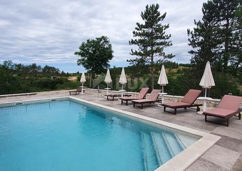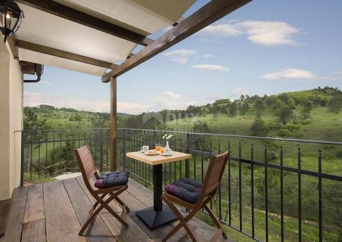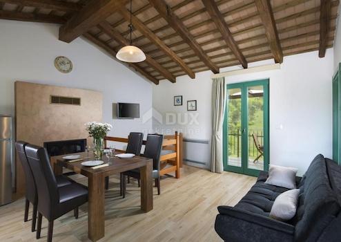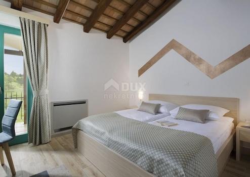 Unweit des schönen Motovun steht ein Resort mit einer Fläche von 32.227 m2 zum Verkauf. In unberührter Natur in Einsamkeit in einer zusammenhängenden Einheit befindet sich ein Hotel mit Restaurant und Schwimmbad und 5 Schlafzimmern. Dann drei Einfamilienhäuser mit zwei Schlafzimmern, von denen eines über einen eigenen Pool und eines über eine Whirlpool-Badewanne verfügt. Für den Bau von weiteren 5 Häusern sowie für den Bau eines Camping-Resorts und zusätzlicher Gewerbeflächen liegt ein ausgearbeiteter Vorentwurf vor. Es gibt auch einen Bach auf dem Land, der dieses schöne Resort weiter bereichert. Das Grundstück ist komplett für Gastronomie - Tourismus, TRP - Tourismusentwicklungsgebiet und TP - Tourismusgebiet und bietet unzählige Entwicklungsmöglichkeiten. Das Besondere an diesem Resort ist, dass es seinen Gästen unvergessliche Spaziergänge in der Natur bietet und nur von landwirtschaftlichen Flächen umgeben ist. Dieses Resort ist eine perfekte Gelegenheit, ein gut etabliertes Geschäft fortzuführen und sich weiterzuentwickeln.