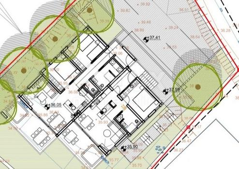 Der Eigentümer hat ein konzeptionelles Projekt für den Umbau des Bestandsgebäudes erstellen lassen und ist bereit, das Projekt an den zukünftigen Eigentümer zu übertragen. Dem Konzeptentwurf zufolge sollte das Haus im Erdgeschoss zwei Einzimmerwohnungen und im ersten Obergeschoss ein Dreizimmer-Penthouse enthalten. Jede Wohnung hätte zwei Parkplätze und einen Whirlpool auf der Terrasse.