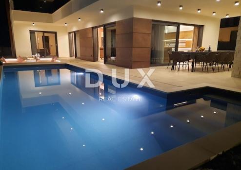 Diese wunderschöne Villa in Zaton, in der Nähe von Zadar, bietet luxuriöse Unterkünfte mit einer Gesamtfläche von 267 m2. Es wurde auf einem 615 m² großen Grundstück erbaut und bietet einen geräumigen und hellen Raum mit modernen Einrichtungen. Im Erdgeschoss erwartet die Gäste ein geräumiges Wohnzimmer, das mit einer voll ausgestatteten Küche und einem Esszimmer verbunden ist. Große Glasflächen sorgen für viel natürliches Licht und ermöglichen auf beiden Seiten der Villa einen direkten Zugang zum Außenraum. Auf der einen Seite befindet sich ein schöner Swimmingpool und auf der anderen Seite ein überdachtes Esszimmer mit Kamin und Außentoilette. Außerdem gibt es im Erdgeschoss eine Waschküche, eine separate Toilette und eines der Schlafzimmer mit eigenem Bad. Eine Innentreppe führt in den ersten Stock, wo sich drei weitere Schlafzimmer befinden, jedes mit eigenem Bad und Terrasse. Im Innenhof der Villa stehen den Gästen zwei Parkplätze, eine Außenküche mit Kamin, eine Außentoilette und ein beheizter Pool von 29 m2 zur Verfügung. Zur Ausstattung der Villa gehören PVC-Zimmerarbeiten mit elektrischen Jalousien und Moskitonetzen, ein Kamin im Wohnzimmer, Fußbodenheizung in den Badezimmern, Klimaanlage in allen Schlafzimmern und Wohnzimmern sowie eine automatische Bewässerung des Gartens. Die Villa ist komplett möbliert und bezugsfertig. Aufgrund ihrer Eigenschaften ist diese Villa eine ausgezeichnete Wahl sowohl für ganzjährige Luxusunterkünfte als auch für die Fortführung von Geschäften im Bereich der Luxus-Touristenvermietung. Sehr geehrte Kunden, die Vermittlungsprovision wird gemäß den Allgemeinen Geschäftsbedingungen berechnet. https://www.dux-nekretnine.hr/opci-uvjeti-poslovanja