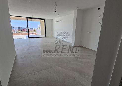 Wohnung 2B in Novigrad hat insgesamt 87 m2 ohne Terrasse + 88 m2 Garten, befindet sich im Erdgeschoss, Bauphase, 5 min. (1000 m) vom Meer und vom wunderschön angelegten Strand entfernt, 5 Min. (1000 m) vom Zentrum von Novigrad entfernt. Die Wohnung besteht aus einer Küche/Wohnzimmer/Esszimmer, 2 Schlafzimmern, 2 Bädern, Abstellraum, Terrasse 25,40 m2. Besonderheiten der Wohnung:
