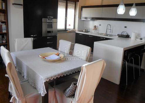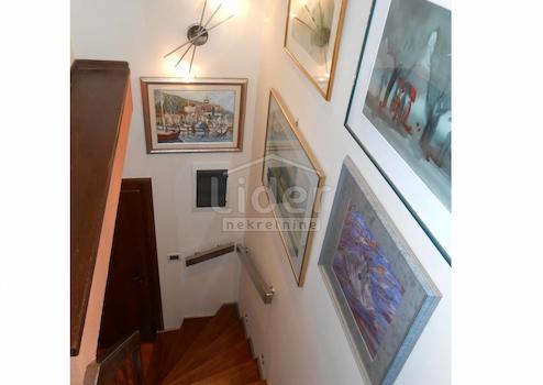 KOZALA Luxuriöse zweistöckige Wohnung in einzigartiger Lage, nur 2 km vom Stadtzentrum entfernt und in der Nähe eines großen Parks, mit unverbaubarem Meerblick in einem regelmäßig gepflegten Wohngebäude von hoher Bauqualität. Die Wohnung verfügt über insgesamt 121 m2 Wohnfläche, die sich auf zwei exklusiv eingerichtete Etagen verteilen. Im ersten Stock von 38 m2 befinden sich derzeit ein geräumiges Schlafzimmer mit Zugang zur Loggia, ein 10 m2 großer Kleiderschrank und ein Badezimmer mit einer Hydromassage-Duschkabine. Dem Projekt zufolge wurde diese Etage als Studio-Apartment gebaut, so dass die Installationen für die Küche bereits ausgeführt wurden, aber derzeit nicht in Betrieb sind. Eine schöne, speziell entworfene Treppe aus einer Kombination von Massivholz und Chrombeschlägen führt in die zweite Etage von 83 m2, wo sich ein offener, heller Raum mit einem geräumigen Wohnzimmer, Esszimmer und Küche, ein Schlafzimmer und ein großes Badezimmer befinden. Diese luxuriös eingerichtete Wohnung wird komplett möbliert und hochwertig ausgestattet verkauft. Fast alle Möbel sind aus Massivholz nach Maß gefertigt. Hervorragende Wärmedämmung und Qualität der Oberlichter installiert. Die Wohnung hat auch einen Holzschuppen und zwei Parkplätze. Äußerst ruhige Umgebung. Sofort bezugsfertig.