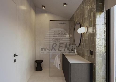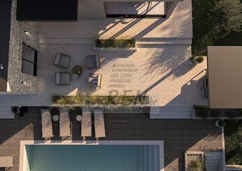 15 km vom Zentrum von Poreč und 10 km vom nächsten Vrsar-Meer und seinen Stränden entfernt, befindet sich auf einem Hügel eine Villa mit 180 m2 Wohnfläche auf insgesamt 938 m2 Grundstück im Bau. Das Grundstück hat eine schöne, regelmäßige Form und ermöglicht so eine maximale Nutzung für zusätzliche Einrichtungen im Garten. Das Haus besteht aus zwei Etagen – dem Erdgeschoss, wo sich Wohnräume im offenen Konzept, Sanitäranlagen, Garderoben und Technikräume für die Zentralheizung und Wäscherei mit allen notwendigen Anschlüssen sowie Räume zur Aufbewahrung persönlicher Gegenstände befinden, Fahrräder und mobile Geräte für Garten und Schwimmbad. Der besondere Teil des Erdgeschosses verzaubert mit einem essentiellen Wellnessbereich mit Sauna und Dusche. Im ersten Stock befinden sich 3 Schlafzimmer mit separatem Bad. In einem komfortablen, umzäunten Garten, der reich an jahrhundertealten Olivenbäumen, einheimischen Blumen und einer Rasenfläche mit Bewässerung ist, befindet sich ein beheizter Pool von 40 m2 mit Sonnendeck und Kamin sowie einem überdachten Essbereich, in dem sich die Sommerküche befindet gelegen. Hervorzuheben ist natürlich das imposante Metalltor, das das gesamte Bild innerhalb des ummauerten Grundstücks umrahmt. Parkplatz für zwei Fahrzeuge mit Ladegerät für Elektrofahrzeuge. Hochwertige Bauweise mit 10 und 15 cm Fassadendämmung, PVC-Fenstern, Aluminium-Schiebeläden in den Räumen, Glasschiebewänden im Erdgeschoss, wasserbasierte Fußbodenheizung mit Mitsubishi-Wärmepumpe, Kühlsystem, Filomuro-Türen, Microtopping-Bodenbelag, Italienische Möbel und Beleuchtung sowie hochwertige Ausstattung sowohl im Innen- als auch im Außenbereich sind die Hauptmerkmale, die den Investor beim Bau der gesamten Geschichte leiten. All dies lässt das Bild einer großartigen Villa entstehen, die alle Parameter selbst der anspruchsvollsten Ansprüche erfüllt.