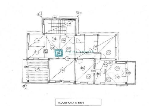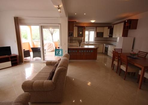 Im Erdgeschoss, mit einer Gesamtfläche von 128,56 m2, befindet sich eine Wohnung bestehend aus einem Eingangsbereich, einer Küche, einem Esszimmer und einem Wohnzimmer mit Zugang zu einer großzügigen überdachten Terrasse von 13 m2, drei Schlafzimmern, einem davon ein Hauptschlafzimmer mit eigenem Badezimmer, ein zusätzliches Badezimmer, eine Toilette und ein Abstellraum. Die Wohnung im ersten Stock hat einen identischen Grundriss mit einer Gesamtfläche von 122,37 m2, das Hauptschlafzimmer verfügt neben dem Badezimmer auch über eine Terrasse von 6,46 m2.