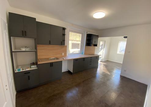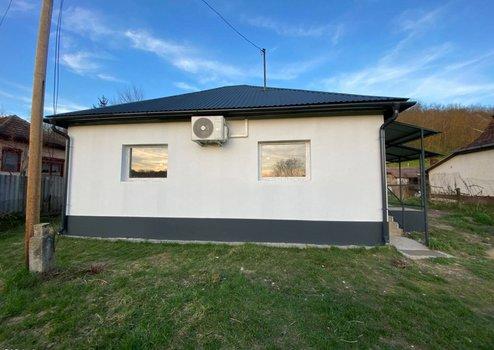 Benczúrfalván, csodálatos csendes természeti környezetben teljes, igényes felújítás után eladó kedves három szobás, nagy étkező konyhás családi ház.