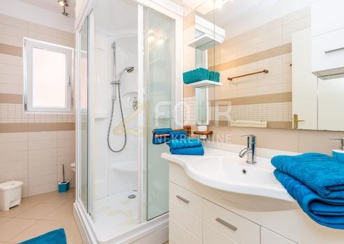Es besteht aus einer Küche mit Esszimmer und Wohnzimmer, drei Schlafzimmern, drei Badezimmern, einer Terrasse und zwei Loggien mit freiem Blick auf das Meer.