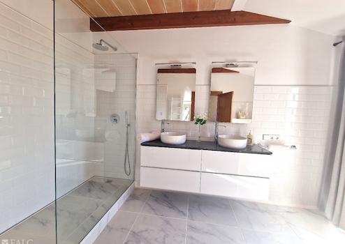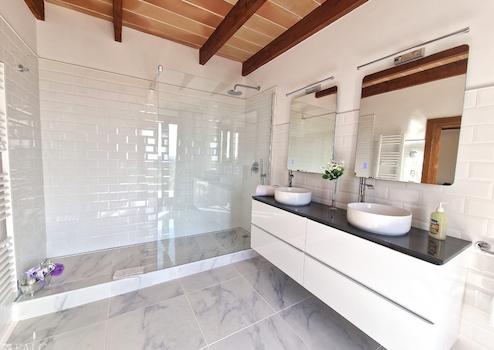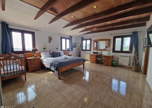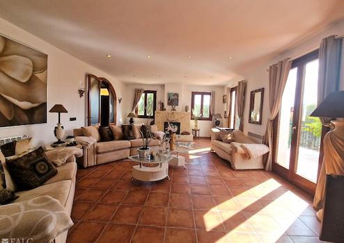 Auf zwei Ebenen verteilen sich insgesamt fünf sehr geräumige Schlafzimmer, jedes mit Bad en Suite und Einbauschränken. Im Erdgeschoss, in dem sich ein Schlafzimmer befindet, liegen des Weiteren diverse Abstellräume, ein großer Wohnbereich, ein separates Esszimmer mit anschließendem Salon, eine offene Küche mit einer Essbar und verschiedene, teilweise überdachte Terrassen.