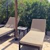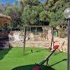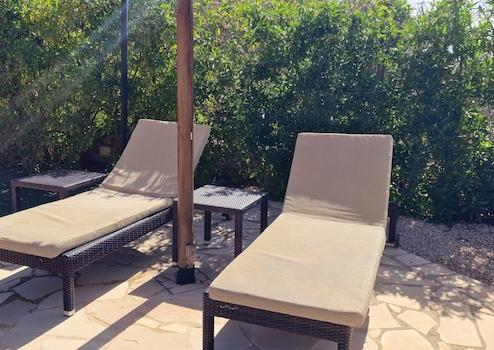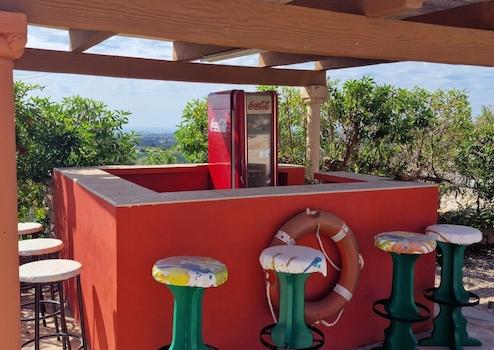 Der parkähnliche Garten ist mit Obstbäumen und Palmen bepflanzt und bietet viel Platz zum Entspannen und Genießen der mediterranen Atmosphäre. Stellplätze für Fahrzeuge sind ebenfalls vorhanden.
