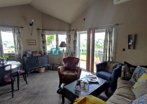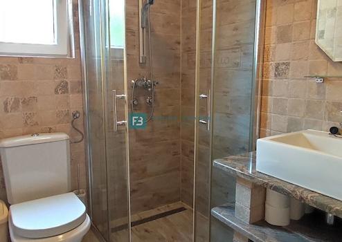 Das Innere des Hauses besteht aus dem Erdgeschoss, wo sich eine große Dreizimmerwohnung mit Küche und Wohnzimmer befindet, die zu einer schönen überdachten Terrasse und zwei Badezimmern führt. Darüber hinaus gibt es ein kleineres Studio-Apartment mit eigener Küche und Bad. Diese beiden Wohnungen verfügen über Fußbodenheizung in allen Badezimmern und Klimaanlagen in allen Zimmern. Eine Außentreppe führt in die 1. Etage, wo sich ein Apartment mit zwei Schlafzimmern und angrenzendem Wohn- und Esszimmer befindet, von dem aus auch Zugang zur Terrasse besteht. Ein Schlafzimmer verfügt über ein eigenes Bad und es gibt ein weiteres Gemeinschaftsbad mit Badewanne. Die Innentreppe führt zur Galerie, wo sich ein kleines Büro mit einer Ausgangsterrasse mit herrlichem Blick auf die Stadt und die Umgebung befindet. Im 1. Stock befindet sich außerdem ein weiteres kleineres Studio-Apartment, das mit einer Küche und einem Badezimmer ausgestattet ist.