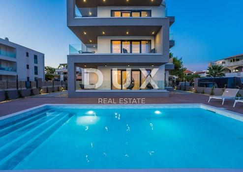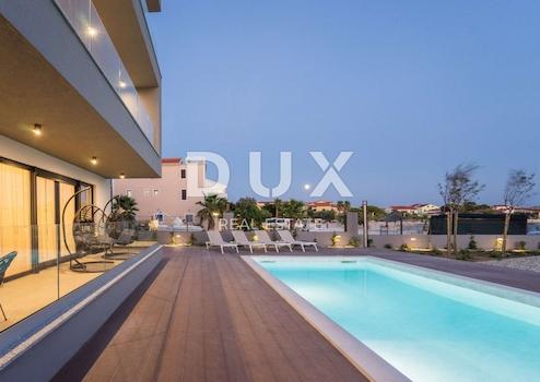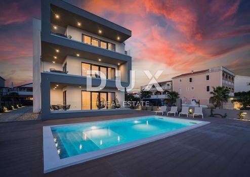 Zum Verkauf steht eine Luxusvilla an der Küste der Insel Vir in der Nähe von Zadar. Die Villa wurde im Jahr 2022 erbaut und verfügt über eine Gesamtfläche von 600 m2 und wurde auf einem großzügigen Grundstück von 1000 m2 errichtet. Es besteht aus zwei Etagen und einer Dachterrasse mit wunderschönem Blick auf das Meer und den Strand. Die Villa verfügt über insgesamt 4 separate Wohneinheiten. Jede Wohnung verfügt über zwei Schlafzimmer und angeschlossene Badezimmer, ein geräumiges Wohnzimmer, eine Küche und ein Esszimmer, eine Terrasse und eine zusätzliche Toilette. Im Erdgeschoss gibt es eine Zweizimmerwohnung und einen Wellnessraum mit Whirlpool und Sauna. Im ersten Stock befinden sich zwei Wohnungen und im zweiten Stock eine weitere Wohnung. Im komplett umzäunten Hof der Villa gibt es einen Garten, einen beheizten Swimmingpool, eine Sommerküche und einen privaten Parkplatz mit sechs Stellplätzen. Die Insel Vir ist ein bekanntes Touristenziel und der meistbesuchte Ort in der Gespanschaft Zadar. Wunderschöne Strände und unberührte Natur sind nur einige der Vorzüge dieser Insel, die nahe dem Stadtzentrum von Zadar liegt. Vir liegt 13 km von der historischen Stadt Nina entfernt, die neben reichen Kulturdenkmälern auch den längsten Sandstrand Kroatiens, Kraljičina plaža, bietet. Das Stadtzentrum, die Stadt Zadar, ist 30 km entfernt und der nächste Flughafen ist 38 km entfernt.