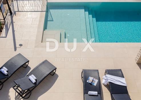 Wir präsentieren stolz diese äußerst luxuriöse Familienvilla in einer der luxuriösesten Siedlungen im südlichen Teil der dalmatinischen Küste. Es geht darum, sonnenverwöhnt und mit viel Grün geschmückt zu sein. Nur wenige Autominuten oder zu Fuß vom Zentrum und den wunderschönen Stränden entfernt liegt diese unumgängliche Villa, die jede Aufmerksamkeit wert ist. Was dieses Anwesen von allen anderen unterscheidet, ist die Tatsache, dass es von Anfang an als private Oase der Ruhe für die Bedürfnisse des Eigentümers und seiner Familie gebaut wurde, was gleichzeitig die hohe Qualität aller durchgeführten Arbeiten bestätigt Qualitätsniveau aller verwendeten Materialien, äußerst wertvolle und einzigartige Möbel sowie die Gestaltung des Innenraums mit dem Innenhof der Villa. Ziel war es, in jedem Raum der Villa ein Höchstmaß an Komfort und Funktionalität zu gewährleisten. Zusätzlich zu allem, was oben erwähnt wurde, wurde die Lage der Villa sorgfältig ausgewählt, um den von den Eigentümern angestrebten Bedürfnissen nach Ruhe, Privatsphäre und Luxus gerecht zu werden, während sie darüber hinaus das Leben und den Aufenthalt in der Villa einfach macht Nähe der notwendigen Einrichtungen wie Geschäfte, Restaurants, Schulen, zahlreiche Spaziergänge, der Strand und dergleichen. Begleiten Sie uns in der Geschichte dieser seltenen und wertvollen Gelegenheit, einer der attraktivsten Villen an diesem Teil der Küste. BESCHREIBUNG DER IMMOBILIE: Nur 180 m vom angelegten Strand und dem kristallklaren Meer entfernt befindet sich diese hochwertige freistehende Familienvilla mit insgesamt 360,75 m² Wohnfläche, die sich über zwei Etagen erstreckt und auf einem angelegten und angelegten Grundstück liegt gepflegte Grundstücke. Beim Betreten der Villa werden wir zunächst von einer anmutigen und luxuriösen Lobby voller Tageslicht mit Platz für eine Garderobe begrüßt, die uns dann in den als offenen Raum gestalteten Wohnbereich im Erdgeschoss führt. In diesem Teil der Villa dominiert ein komfortables und geräumiges Wohnzimmer, das mit großen Glaswänden geschmückt ist, mit deren Hilfe der Raum mit Tageslicht durchflutet wird, was ein Gefühl von Luxus, Wärme des Raumes und seiner Luftigkeit vermittelt. Ebenso eröffnet sich durch die gleichen Glaswände ein direkter Zugang zur überdachten Sommerterrasse und ein Blick auf den größeren Pool. Neben dem Wohnzimmer gibt es auch einen Essbereich, der groß genug für die ganze Familie ist, sowie eine etwas separate und etwas privatere, moderne, helle Küche, die mit erstklassigen italienischen Elementen ausgestattet ist und exklusiv für diese Villa ausgewählt wurde. Im zweiten Teil des Erdgeschosses gibt es ein zusätzliches Wohnzimmer und einen Kamin. Eine Innentreppe führt in die mittlere Etage, wo sich ein großzügiger Fitnessraum für alle Sportbegeisterten und ein Billardraum zum Entspannen mit Freunden und Familie befinden. Im zweiten Teil gibt es außerdem einen Spa-Bereich zum Entspannen, der über eine Sauna und ein eigenes Badezimmer verfügt. Durch den Flur erreichen wir den Teil, in dem sich ein Heizraum, ein Abstellraum und eine Waschküche befinden. Eine elegante Innentreppe führt in die erste Etage der Villa, wo sich vier geräumige Schlafzimmer befinden, von denen jedes über ein eigenes Bad verfügt, während das Hauptschlafzimmer über eine eigene Terrasse verfügt. Darüber hinaus bietet jedes Schlafzimmer einen unglaublichen Panoramablick auf das endlose Meer und die dalmatinischen Inseln. Und so nehmen wir die Innentreppe zum Dach, wo sich ein luxuriöser Whirlpool befindet, wo Sie die makellose Aussicht bei einem Glas Ihres Lieblingssekts genießen können. Es handelt sich um eine Villa, die ausschließlich für die Bedürfnisse des Eigentümers gebaut und mit Hilfe von Top-Designern so dekoriert wurde, dass die Villa Luxus ausstrahlt und zeitlos bleibt. Daher achteten die Eigentümer absolut auf jedes Detail und legten gleichzeitig größten Wert auf den Komfort und die Funktionalität jedes Zimmers. Ebenso legten die Eigentümer großen Wert auf den weitläufigen Garten, der vollständig eingezäunt und vor jedermanns Sicht verborgen ist und ein Höchstmaß an Privatsphäre und Ruhe bietet. Der Innenhof der Villa ist auf luxuriöseste Weise dekoriert und verfügt über einen privaten Spielplatz und einen Park für Kinder, während alle im Innenhof der Villa befindlichen Inhalte durch malerische Wege verbunden sind. So befindet sich im Garten ein großzügiger Swimmingpool mit Liegewiese, und ein besonderes Detail des Pools ist, dass er durch seine Lage auf dem Feld, die Beschaffenheit des Feldes und den Blick Richtung Meer ein Gefühl von Entspannung vermittelt endlose Verbindung mit dem Meer und den Inseln. In den warmen Sommermonaten haben Sie die Möglichkeit, Ihre Zeit in einer separaten, größeren Sommerküche mit einem echten istrischen Kamin und einer funktionalen Küche sowie Sitzgelegenheiten zu verbringen. Außerdem gibt es im Garten eine zusätzliche Wohnung von 49,50 m2, die aus einem Wohnzimmer, einer Küche und einem Esszimmer besteht. Im zweiten Teil gibt es ein Schlafzimmer und ein Badezimmer. WEITERE INFORMATIONEN; *Solarkraftwerk *Der Hof und die Umgebung verfügen über eine indirekte Beleuchtung, die ferngesteuert werden kann *Das gesamte Gebäude verfügt über Fußbodenheizung und -kühlung, jedes Zimmer verfügt über einen eigenen Thermostat (mit der Möglichkeit der Fernbedienung) und eine Wärmepumpe *Alle Zimmer verfügen über Klimaanlagen *Das Gebäude verfügt über einen Wasserenthärter im Heizraum, das Wasser im Haus ist kalkfrei *Alle Möbel sind maßgefertigt *Die Anlage und die Umgebung sind vollständig mit Videoüberwachung abgedeckt *Die Anlage ist mit einem Paradox-Alarmsystem ausgestattet *Der Pool wird durch eine eigene Wärmepumpe, Überlauf (unendlich) beheizt und für Sauberkeit sorgt die Elektrolyse von Salzwasser mit der Möglichkeit der F