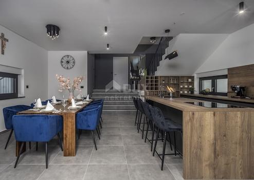 Eine schöne Luxusvilla in einem Neubau steht in Pridraga bei Zadar in Norddalmatien zum Verkauf. Die einzigartige Lage dieser Villa am Karina-Meer, umgeben vom Schatten der Pinien, verleiht ihr einen unersetzlichen mediterranen Charme in Form von modernem Luxus. Die Villa mit einer Wohnfläche von 204 m2 wurde auf einem Grundstück von 666 m2 errichtet. Es besteht aus Erdgeschoss und Obergeschoss. Im Erdgeschoss der Villa befinden sich ein wunderschön eingerichtetes Wohnzimmer, ein Esszimmer und eine voll ausgestattete Küche. Es gibt auch eine zusätzliche Toilette und eine Waschküche im Erdgeschoss. Auf der ersten Etage befinden sich 4 modern eingerichtete und klimatisierte Schlafzimmer mit angeschlossenen Badezimmern. Vom Wohnzimmer aus gelangt man in einen großen gepflegten Hof und Garten der Villa mit einem Pool von 36 m2 und einer Tiefe von 1,35 m. Im Hof gibt es auch einen Außengrill und einen Außentisch. Im komplett eingezäunten Hof der Villa gibt es auch eine Garage und 2 private Parkplätze. Direkt vor der Villa befindet sich ein einsamer Kiesstrand am Karin-Meer, umgeben von einem Pinienwald. Das Karin-Meer ist das kleinste Meer der Welt, und an bestimmten Küstenabschnitten gibt es auch eine Fundstelle mit Heilschlamm. Das Karin-Meer ist auch wegen seines geringen Salzgehalts spezifisch, was das Verdienst des Nebenflusses des Flusses Zrmanja in dieses Meer ist. Fluss. Die Stadt Pridraga ist 37 km vom Stadtzentrum, der Stadt Zadar, und der nächste Flughafen ist 15 km entfernt. In der Nähe gibt es auch viele interessante Naturschätze, wie den Fluss Zrmanja, der mit seinen Stromschnellen und der Möglichkeit zum Rafting und Kajakfahren verzaubert. Der Nationalpark Paklenica und der Naturpark Velebit sind ebenfalls in der Nähe, und etwas weiter südlich liegt der Vrana-See, der größte natürliche See Kroatiens mit einer reichen Flora und Fauna.