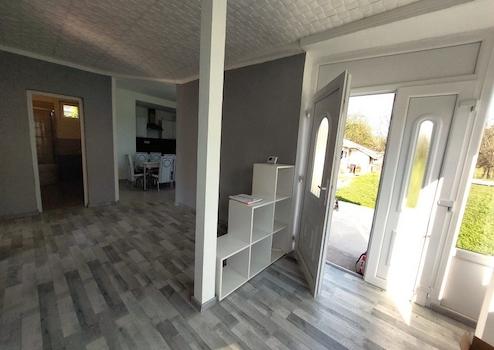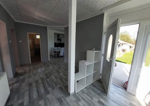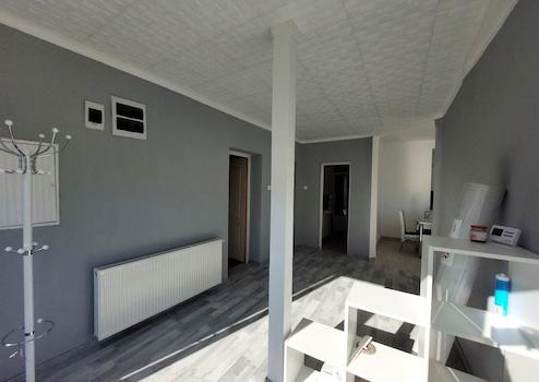 Nagy előtér, bejárati rész, irodának vagy étkezőnek is használható.