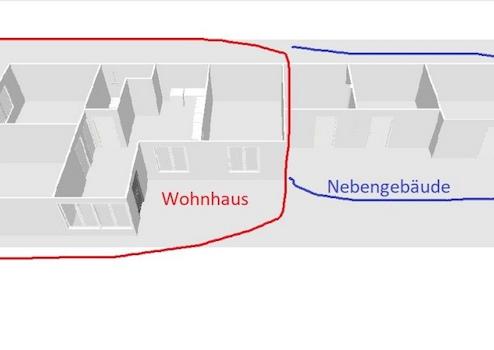 Haupthaus mit 80 m2 Wohnfläche, mehrere kleine Nebengebäude sowie 3500 m2 Grundstück.