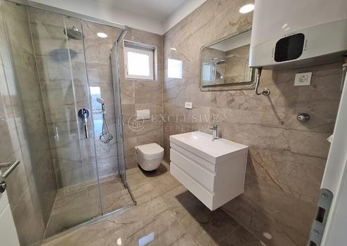 Es enthält einen Flur, eine Küche, ein Esszimmer, ein Wohnzimmer, zwei Schlafzimmer, ein Badezimmer und eine 14 m2 große Terrasse mit einem fantastischen Panoramablick auf die Kvarner-Bucht. Es ist mit der Funktionalität des Raumes und hochwertigen und schönen Keramikbodenbelägen, PVC-Tischlerei mit Elektro ausgestattet. Rollläden und Moskitonetze, Klimaanlage, Fußbodenheizung in der gesamten Wohnung.