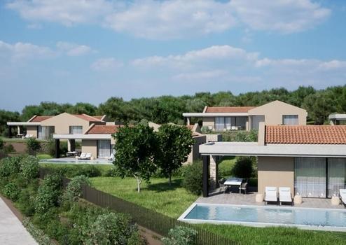 Im Garten jeder Villa gibt es einen Swimmingpool und einen Parkplatz für 2-3 Autos.