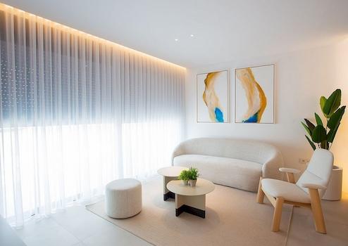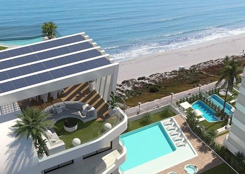 Die Appartements liegen direkt an einem unberührten weißen Sandstrand am Mittelmeer und bieten einen unvergleichlichen Blick auf den Horizont. Tauchen Sie ein in geräumige, lichtdurchflutete Innenräume, die Ihr Wohnerlebnis noch steigern werden. Die 116 exklusiven Apartments, die alle sorgfältig bis zur Perfektion gestaltet sind, strahlen mit jedem Detail Eleganz und Raffinesse aus. Erleben Sie den Inbegriff des Lebens an der Küste, wenn Sie von Ihrer privaten Terrasse aus den atemberaubenden Sonnenuntergang beobachten - ein tägliches Ritual, das für Gelassenheit und Entspannung steht.