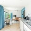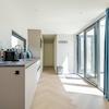 Die Küche befindet sich im „Zwischenbereich“ und hat einen offenen Zugang zum Wohnzimmer. Die Küche hat einen geraden Grundriss.