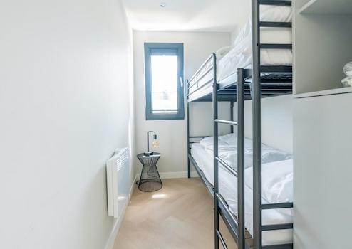 Dieses Schlafzimmer ist kleiner und kann mit einem Etagenbett oder einem Einzelbett ausgestattet werden.