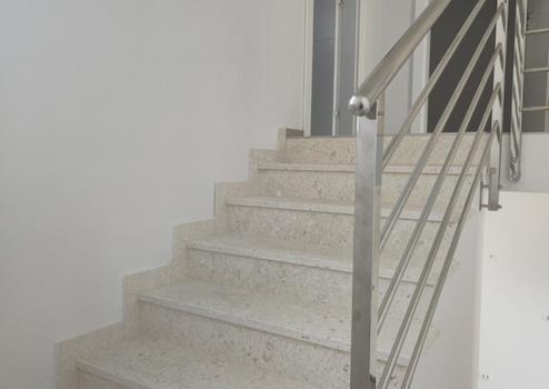 Die Treppe wird aus Stein (Edelstahl-Finish) gefertigt, die äußere Tischlerei wird anthrazitfarben sein und die Innenseite wird weiß sein. Große Glaswände und elektrische Hebe-Schiebe-Jalousien. Strom, Wasser und eine gemeinsame Klärgrube sind vorhanden. Der Anschluss an das Abwassersystem ist in der kommenden Zeit geplant.