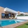 Moderne Villa mit schöner Aussicht, in der Nähe von Benidorm. In dieser Villa befinden sich drei Doppelzimmer, eines davon Suite, zwei Badezimmer, ein helles Wohnzimmer mit großen Fenstern und direktem Zugang zum Pool und Garten. Es hat den Keller, Solarium, Schwimmbad, Garten und privaten Parkplatz.