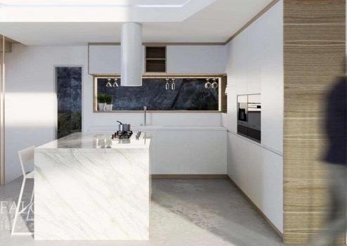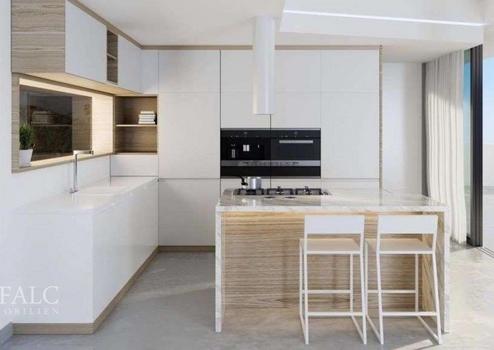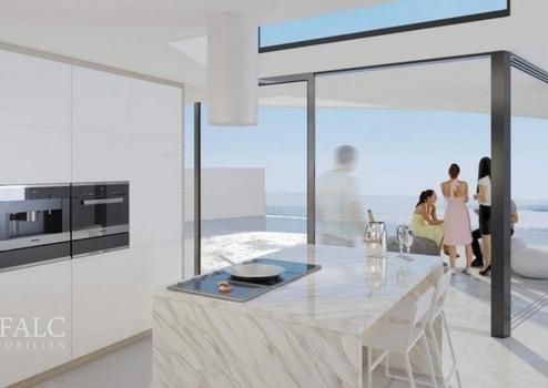 Garten, Parkplatz und Garage, und zeichnet sich durch einen privaten Pool mit atemberaubendem Meerblick aus. Im Erdgeschoss (mit einer Nutzfläche von 142,22 m² plus Terrassenterrasse) befindet sich eine überdachte Eingangshalle, die einen großzügigen Empfangsraum, ein helles Esszimmer und eine offene Küche mit doppelter Deckenhöhe beherbergt. Außerdem gibt es auf dieser Etage ein Gäste-WC und ein Doppelzimmer mit eigenem Bad. Der Raum wird durch eine Außentoilette, einen Grillplatz und eine überdachte Terrasse neben dem Pool vervollständigt. Sowohl das Wohnzimmer als auch das Schlafzimmer haben Zugang zum Hinterhof und zur Poolterrasse. Im ersten Stock (mit einer Nutzfläche von 60,31 m²) bietet ein Galerieflur Ausblick auf das Wohnzimmer. Hier gibt es zwei Doppelzimmer, jeweils mit Ankleidezimmer und eigenem Bad, sowie einen Außenterrassenbalkon mit Meerblick. Im Erdgeschoss befindet sich eine Garage für zwei Autos (mit einer Fläche von 37,96 m²) und ist über eine Innentreppe mit dem Haus verbunden