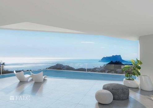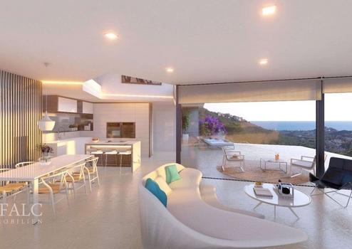 Die beeindruckende neu erbaute Villa in Moraira ist ein architektonisches Juwel im El Portet-Tal und bietet ein außergewöhnliches Wohnerlebnis. Mit drei Schlafzimmern und der Option auf ein viertes bietet es einen Panoramablick auf das Meer, mit dem majestätischen Peñón de Ifach und den imposanten Bergen der Sierra Bernia als Kulisse für unvergessliche Sonnenuntergänge. Diese Villa ist Teil einer exklusiven privaten Anlage mit 16 neuen Anwesen, jedes mit eigenem Garten, Parkplatz und Garage, und zeichnet sich durch einen privaten Pool mit atemberaubendem Meerblick aus. Im Erdgeschoss (mit einer Nutzfläche von 142,22 m² plus Terrassenterrasse) befindet sich eine überdachte Eingangshalle, die einen großzügigen Empfangsraum, ein helles Esszimmer und eine offene Küche mit doppelter Deckenhöhe beherbergt. Außerdem gibt es auf dieser Etage ein Gäste-WC und ein Doppelzimmer mit eigenem Bad. Der Raum wird durch eine Außentoilette, einen Grillplatz und eine überdachte Terrasse neben dem Pool vervollständigt. Sowohl das Wohnzimmer als auch das Schlafzimmer haben Zugang zum Hinterhof und zur Poolterrasse. Im ersten Stock (mit einer Nutzfläche von 60,31 m²) bietet ein Galerieflur Ausblick auf das Wohnzimmer. Hier gibt es zwei Doppelzimmer, jeweils mit Ankleidezimmer und eigenem Bad, sowie einen Außenterrassenbalkon mit Meerblick. Im Erdgeschoss befindet sich eine Garage für zwei Autos (mit einer Fläche von 37,96 m²) und ist über eine Innentreppe mit dem Haus verbunden. Das Anwesen bietet hochwertige Merkmale, darunter 80 x 80 cm große Porzellan-Keramikböden, Außenschreinerarbeiten aus eloxiertem Aluminium mit Wärmedämmung, eine komplett eingerichtete Küche mit erstklassigen Geräten, Badezimmer mit hochwertigen Accessoires, Einbauschränke, Multi- Raum-Audiosystem, Fußbodenheizung und Klimaanlage, TV- und Netzwerkanschlüsse, motorisierte Jalousien und Vorinstallationsmöglichkeiten für Hausautomation und Aufladung von Elektrofahrzeugen. Diese Villa stellt eine einzigartige Gelegenheit für diejenigen dar, die luxuriöses Wohnen in einer idyllischen Umgebung suchen.