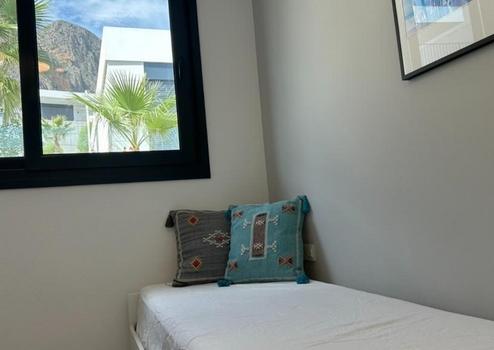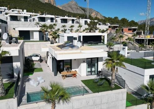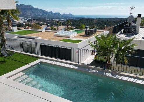 Diese freistehende Villa mit 2 Schlafzimmern und 2 Bädern bietet luxuriöses Wohnen in der malerischen Umgebung von Polop Hills. Mit einem modernen und eleganten Design verfügt dieses Anwesen über ein geräumiges Wohn-Küchen-Esszimmer von 28 m2, das sich perfekt für Familienfeiern und Abendessen mit Freunden eignet. Die Küche ist mit High-End-Geräten und hochwertigen Oberflächen ausgestattet, die Feinschmecker begeistern werden. Vom Wohnzimmer aus haben Sie Zugang zu einer charmanten überdachten Terrasse von 12,3 m2, der ideale Ort, um die warmen mediterranen Nächte und den atemberaubenden Blick auf das Meer und die Berge zu genießen. Der Außenbereich verfügt auch über einen privaten Pool, in dem Sie das sonnige Klima der Region genießen und sich zu jeder Tageszeit entspannen können. Darüber hinaus verfügt die Villa über einen komfortablen Parkplatz, der sicherstellt, dass Ihr Fahrzeug immer geschützt und zugänglich ist. Das Anwesen ist sorgfältig gestaltet, um das natürliche Licht optimal zu nutzen und eine warme und einladende Atmosphäre im ganzen Haus zu schaffen. Diese Villa befindet sich in einer ruhigen und gut beleuchteten Umgebung und ist ideal für diejenigen, die ein entspanntes Leben an der Costa Blanca suchen. Polop Hills bietet eine ruhige und natürliche Umgebung mit einfachem Zugang zu nahe gelegenen Stränden und lokalen Annehmlichkeiten. Diese Immobilie ist eine einzigartige Gelegenheit, an einem Ort zu leben, der die Ruhe der natürlichen Umgebung mit Komfort und modernem Stil verbindet. Verpassen Sie nicht die Gelegenheit, diese charmante Villa zu Ihrem Zuhause zu machen. Kommen Sie und entdecken Sie die Schönheit und den Komfort, die Sie in Polop Hills erwarten!